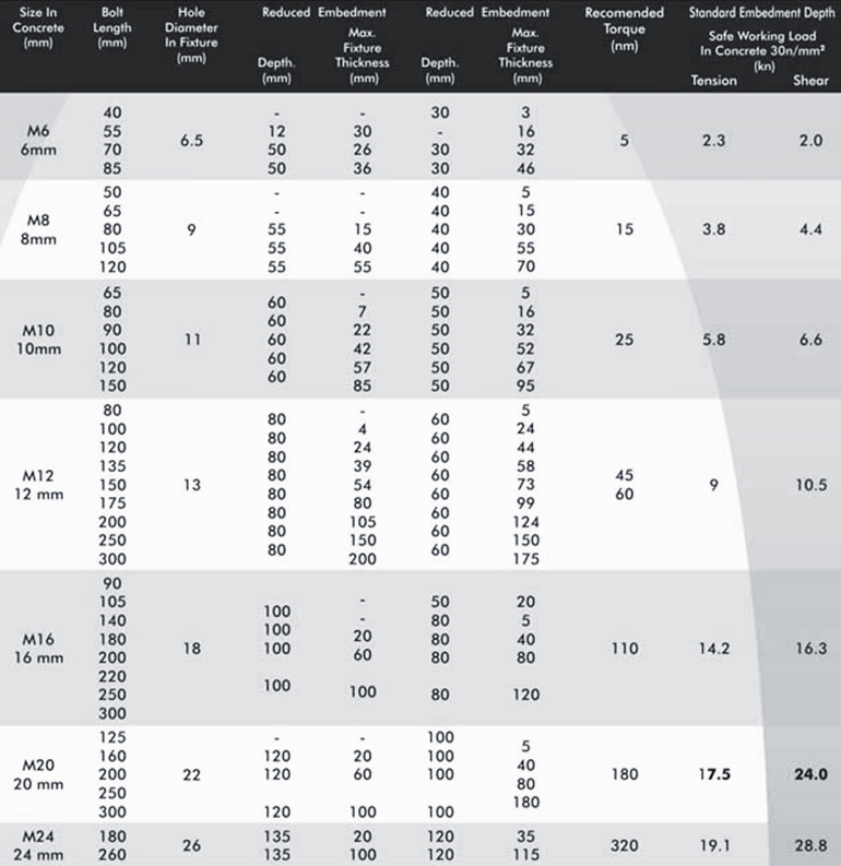 Anchor fasteners are used to securely fix structural components to concrete, masonry or solid base materials.